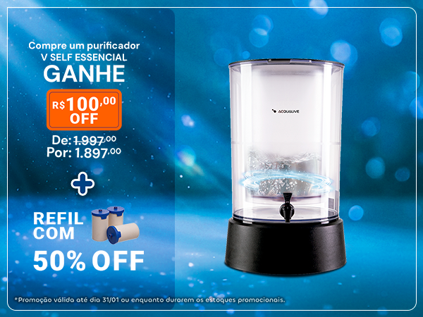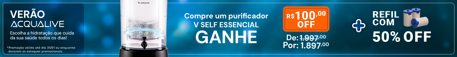 O Purificador de Água mais vendido da Acqualive, o V Self entrega a melhor água em um design que une praticidade e beleza. Tenha uma água pura, alcalina, rica em magnésio 24h por dia!