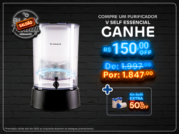 O Purificador de Água mais vendido da Acqualive, o V Self entrega a melhor água em um design que une praticidade e beleza. Tenha uma água pura, alcalina, rica em magnésio 24h por dia!