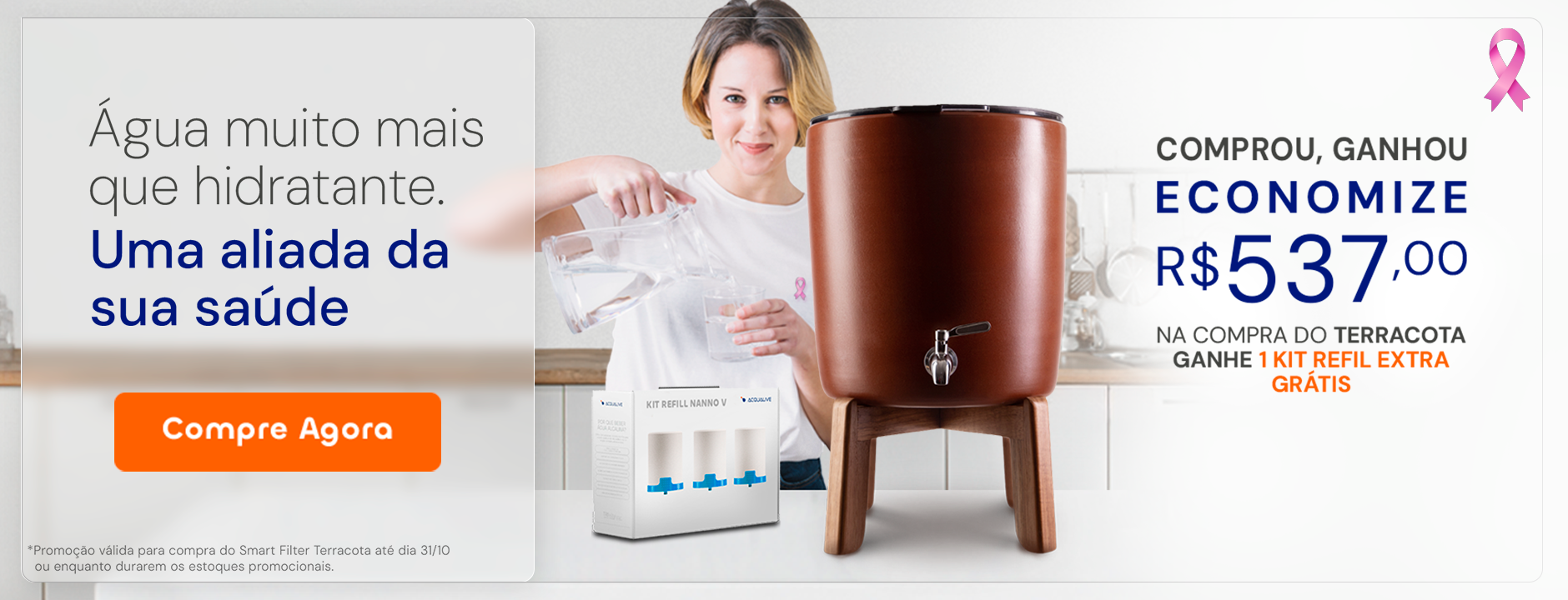 Com um Smart Filter Acqualive sua água será pura, livre de cloro e metais pesados, alcalina, antioxidante e muito mais hidratante. Tudo isso para ajudar você a ter mais disposição, menos doenças e muito mais saúde!