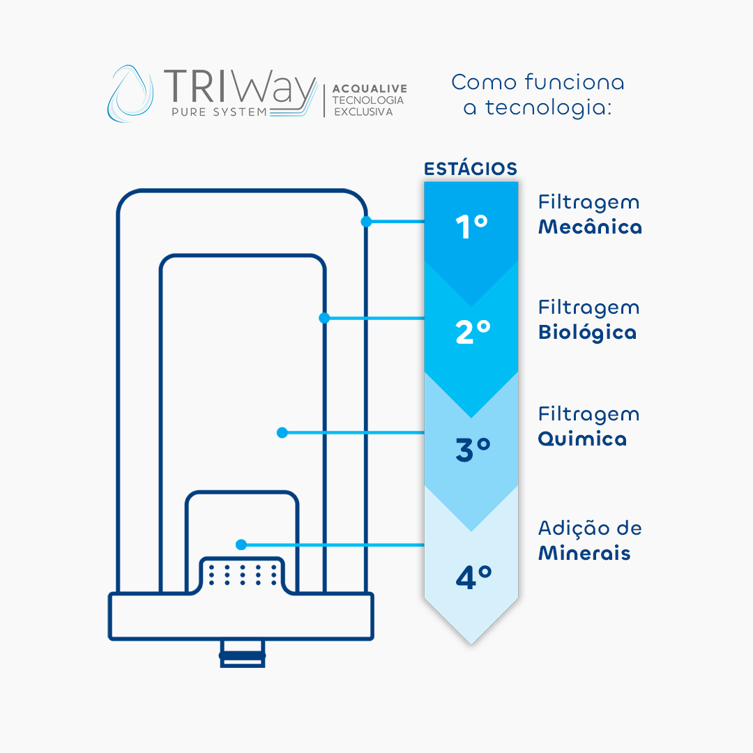 Entre 2021 e 2026, a Acqualive consolidou sua inovação ao nomear oficialmente a tecnologia TRIWAY, reunindo anos de evolução em filtragem de água.