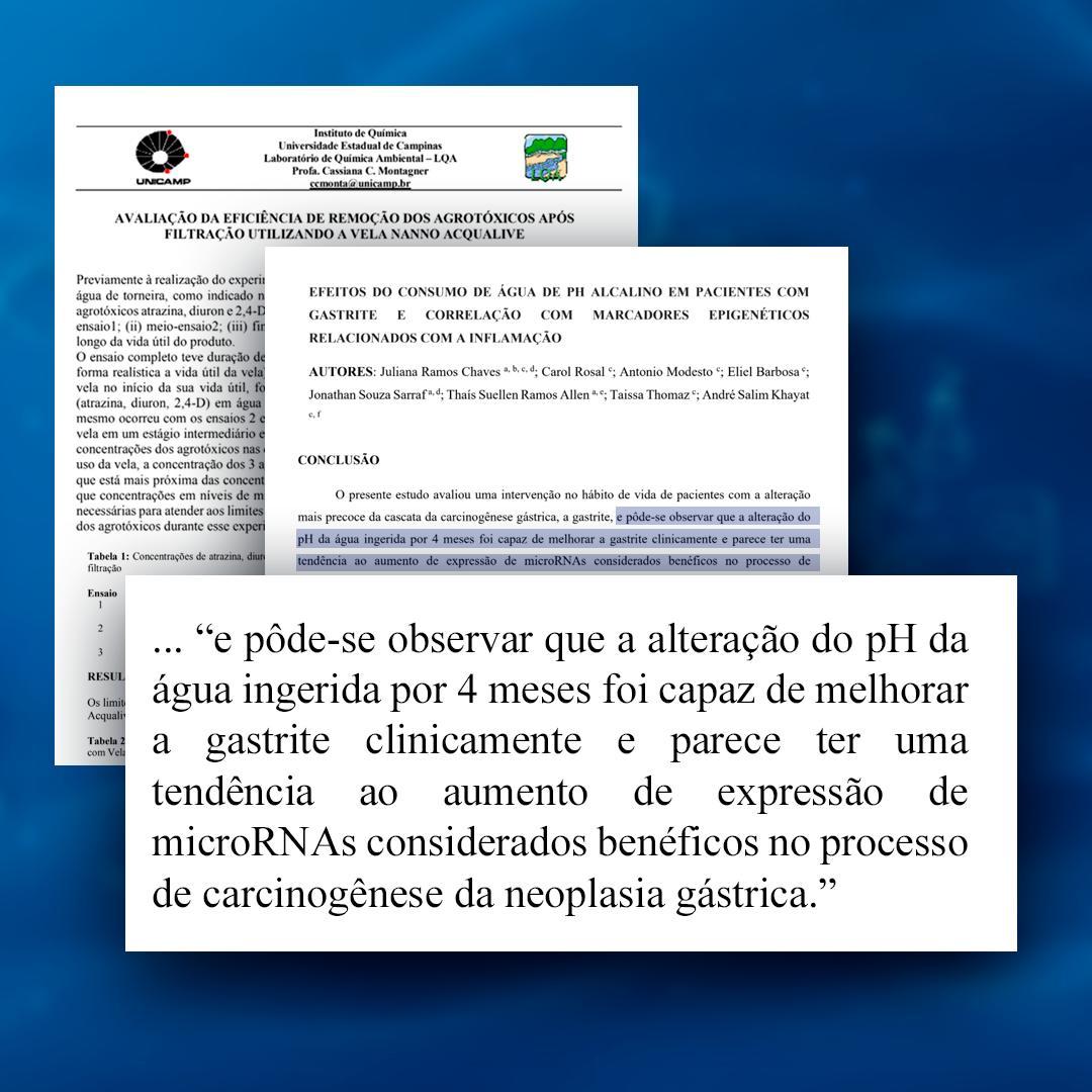 A Acqualive financiou integralmente um estudo clínico inédito no Brasil, aprovado por órgão governamental e conduzido pela Dra. Juliana Chaves. A pesquisa envolveu 50 voluntários com gastrite, que passaram a consumir exclusivamente a água Acqualive, com controle rigoroso de pH em 8,8, por meio de filtros instalados em suas residências.