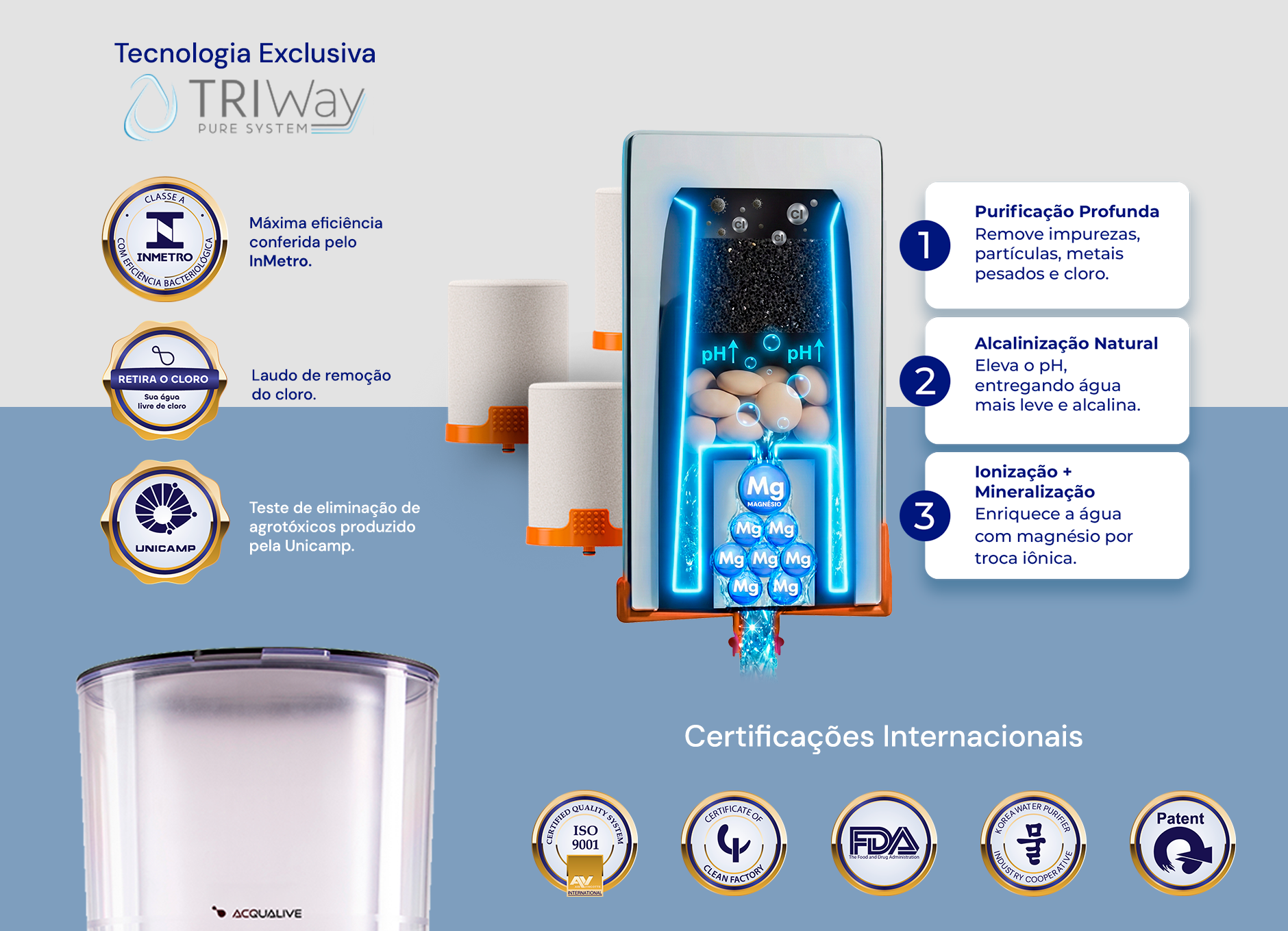 Todos os filtros Acqualive foram certificados por Universidades nacionais e internacionais, possuindo máxima eficiência na purificação de água.