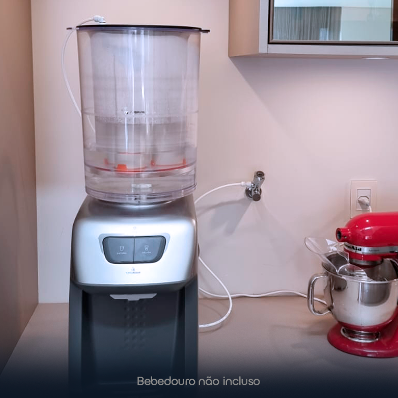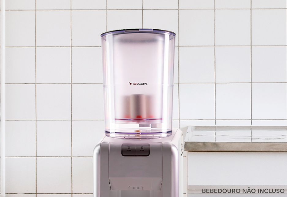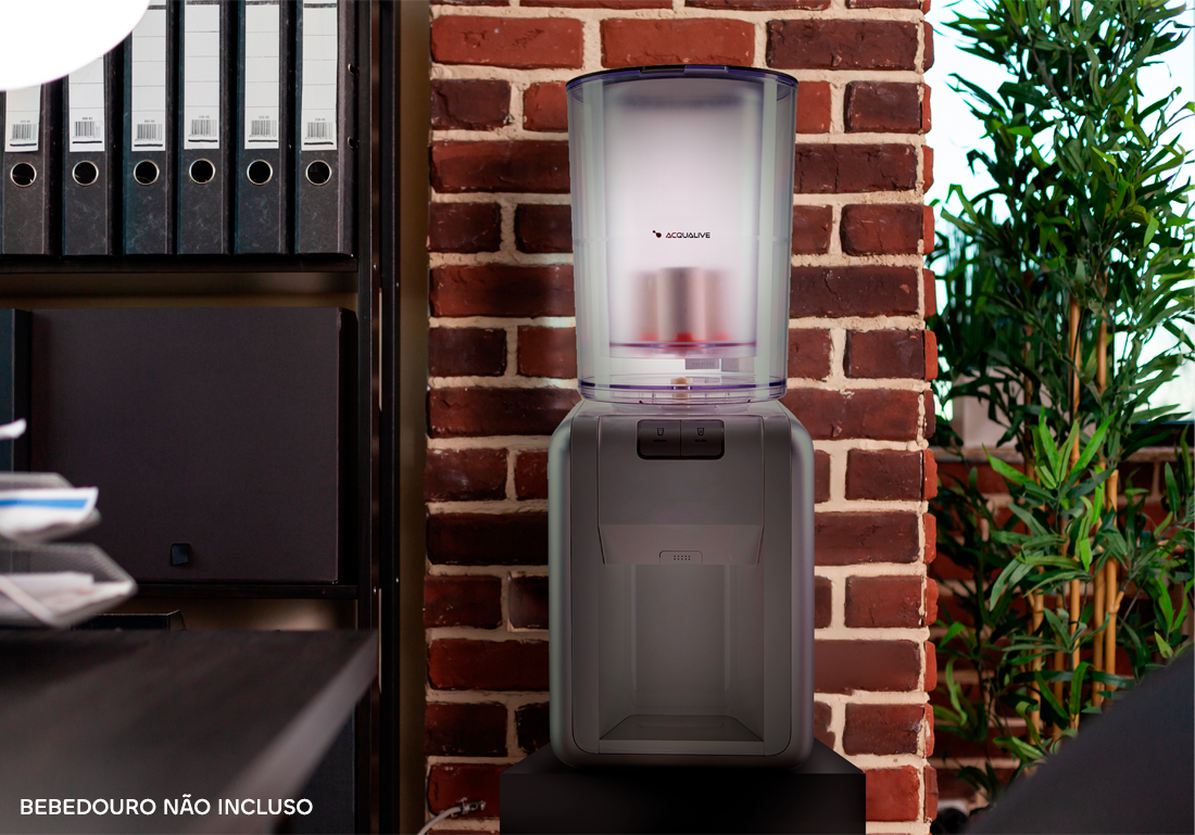 Com o Purificador de Água Acqualive V10 você tem um filtro de água purificador capaz de transformar a água comum em uma água pura. alcalina. rica em magnésio. livre de cloro e com poder alcalinizante. Esta versão é adaptada para substituir galões e bombonas em bebedouros que gelam a água.
