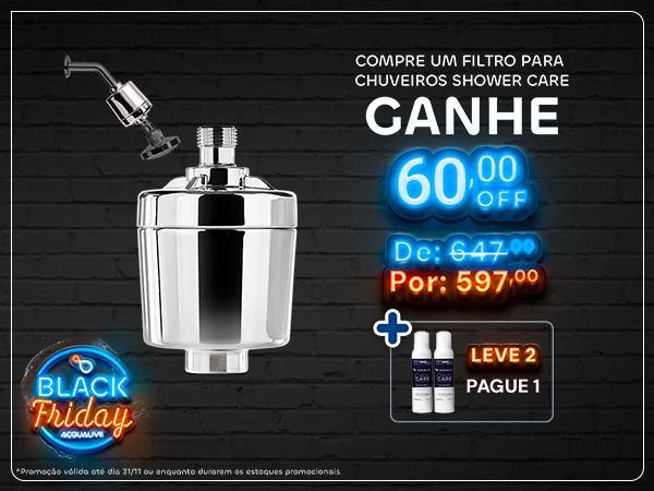 Sua pele absorve mais cloro do que seu sistema digestivo. Por isso, o Filtro para Chuveiro Acqualive Shower se torna fundamental, pois ele remove mais de 99% do cloro presente na água do seu chuveiro, garantindo um banho muito mais saudável, cabelos mais sedosos e uma pele mais bonita.
