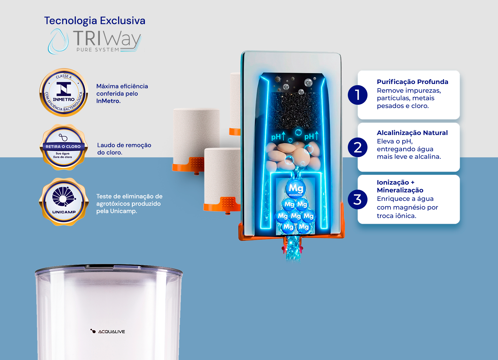 Todos os filtros Acqualive foram certificados por Universidades nacionais e internacionais, possuindo máxima eficiência na purificação de água.
