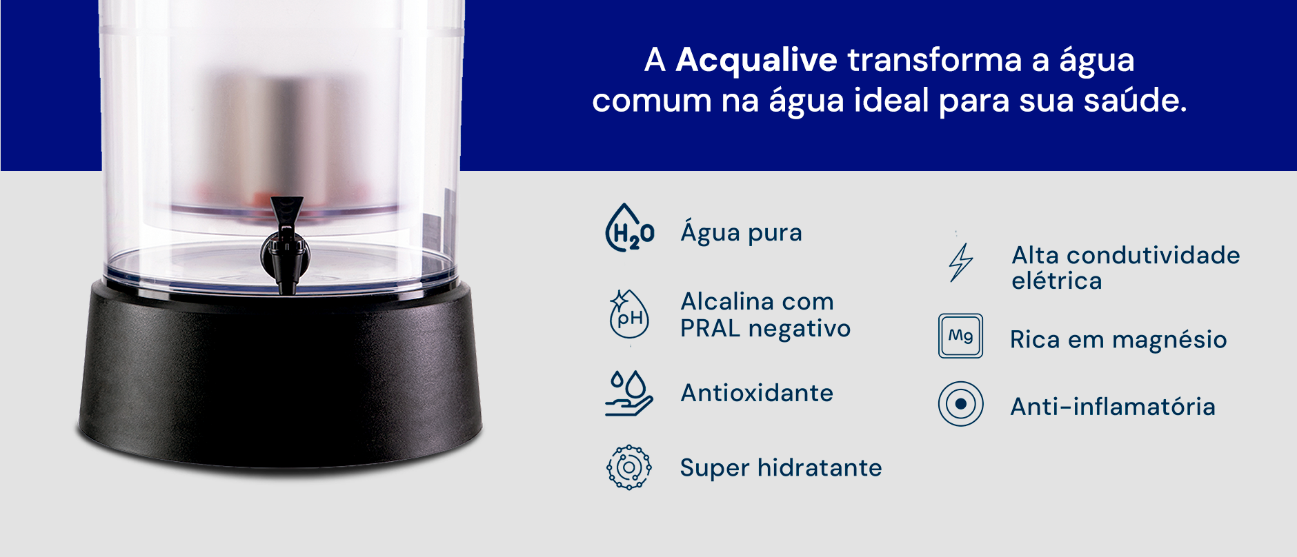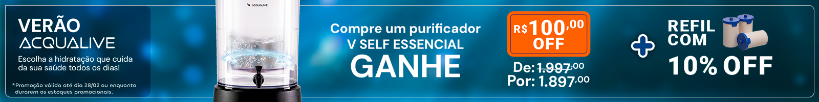 O Purificador de Água mais vendido da Acqualive, o V Self entrega a melhor água em um design que une praticidade e beleza. Tenha uma água pura, alcalina, rica em magnésio 24h por dia!
